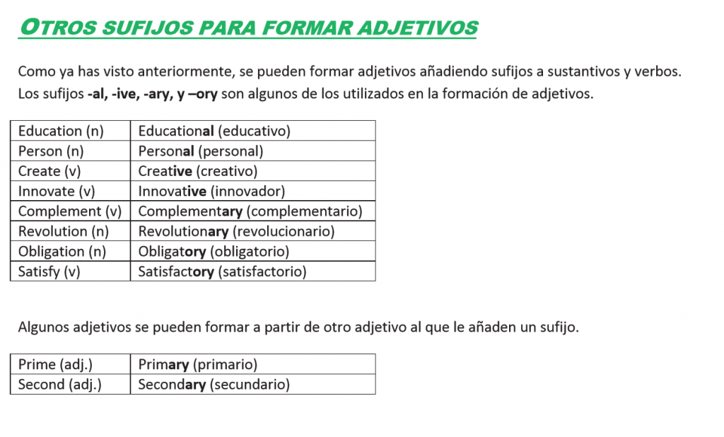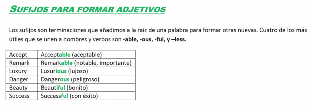 1. La regla general para formar adverbios es añadir la terminación “-ly” a un adjetivo, que equivale a la terminación en castellano de (“‑mente”).