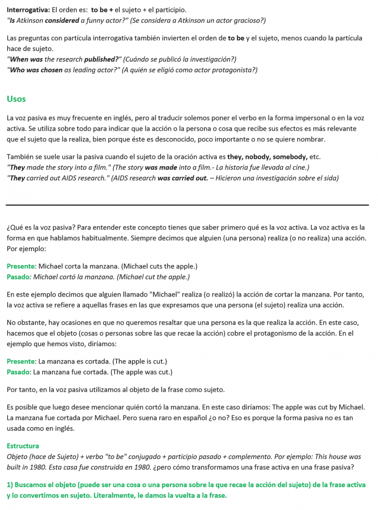 • La voz pasiva